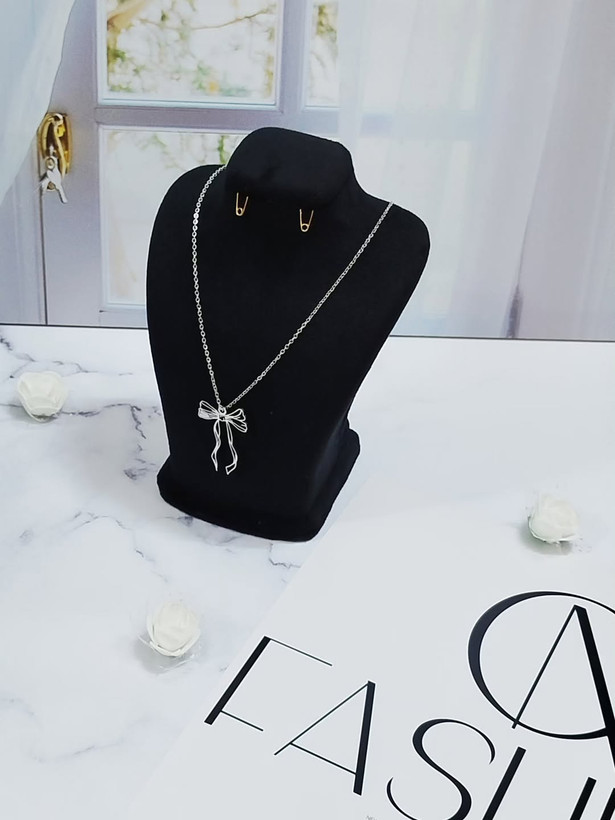 گردنبند پاپیون نقره ای استیل زنجیر رنگ ثابت