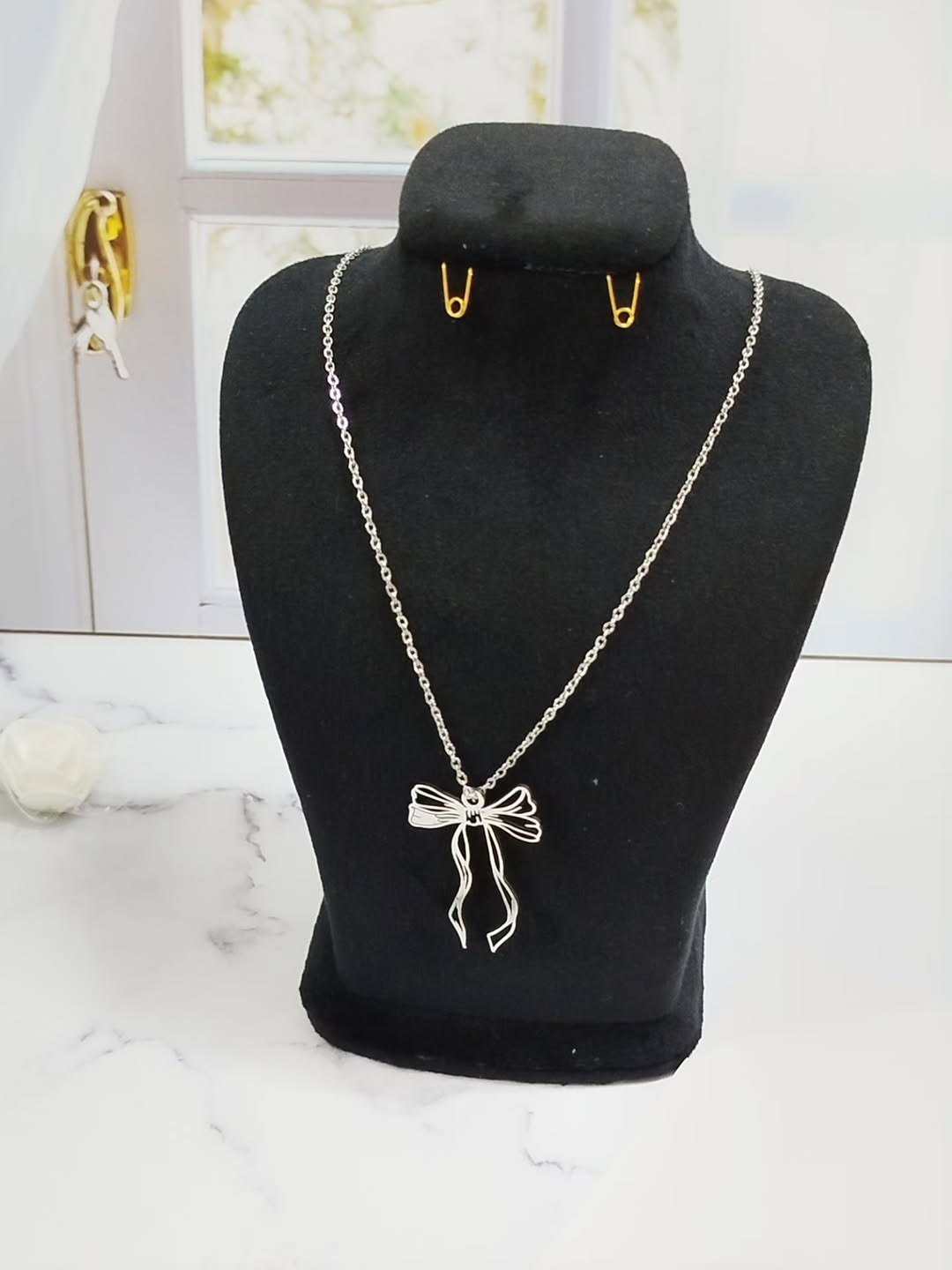گردنبند پاپیون نقره ای استیل زنجیر رنگ ثابت