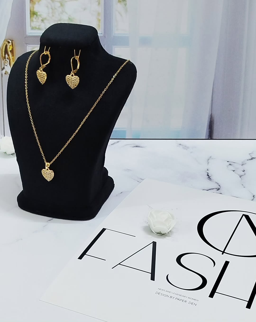 نیم ست طرح طلا شامل گردنبند و گوشواره ضد حساسیت