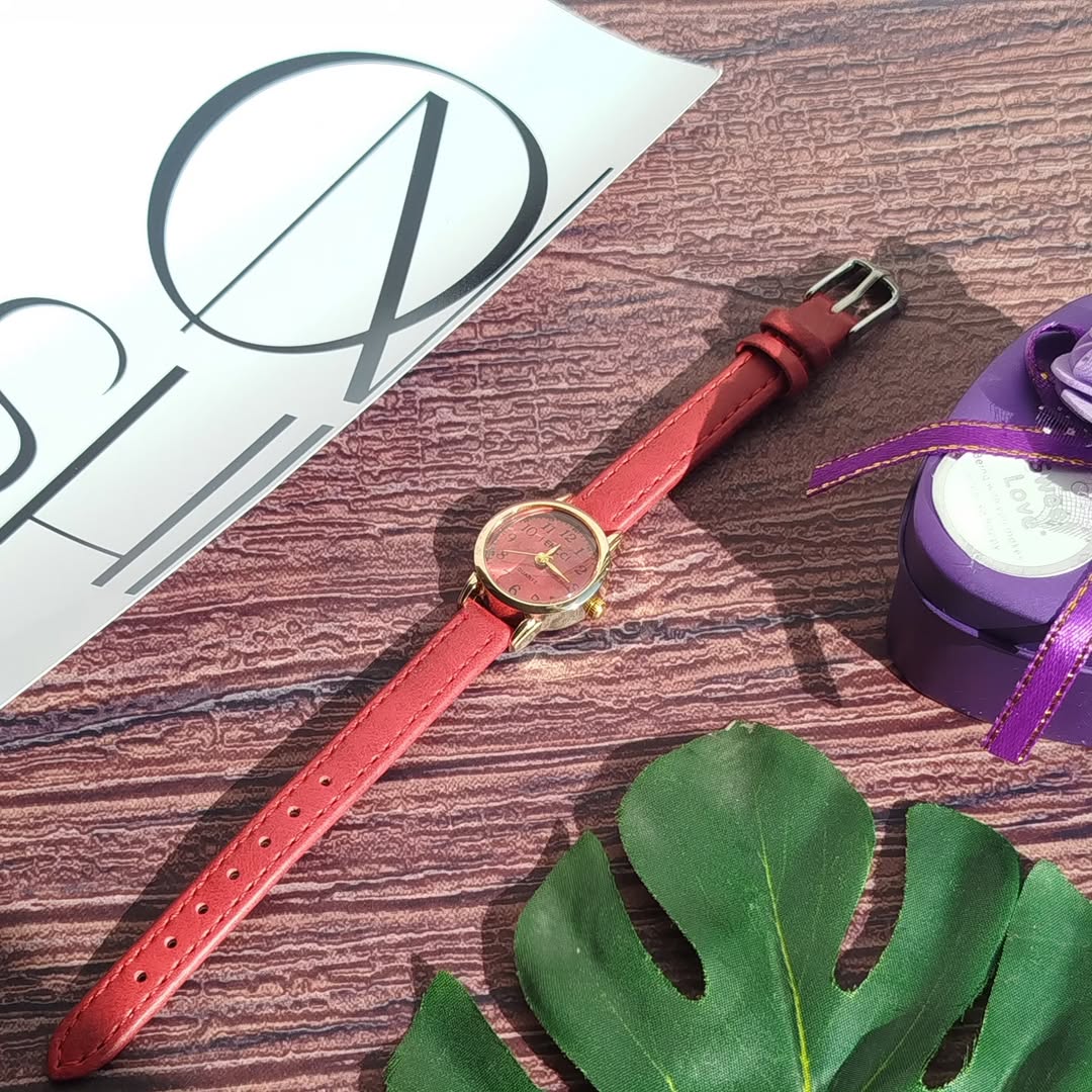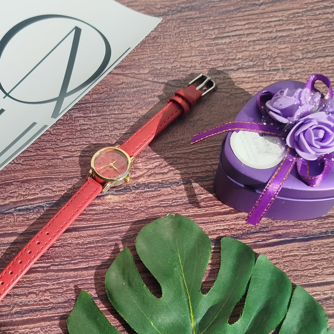 ساعت مچی بند چرمی زرشکی شیشه ذره بینی