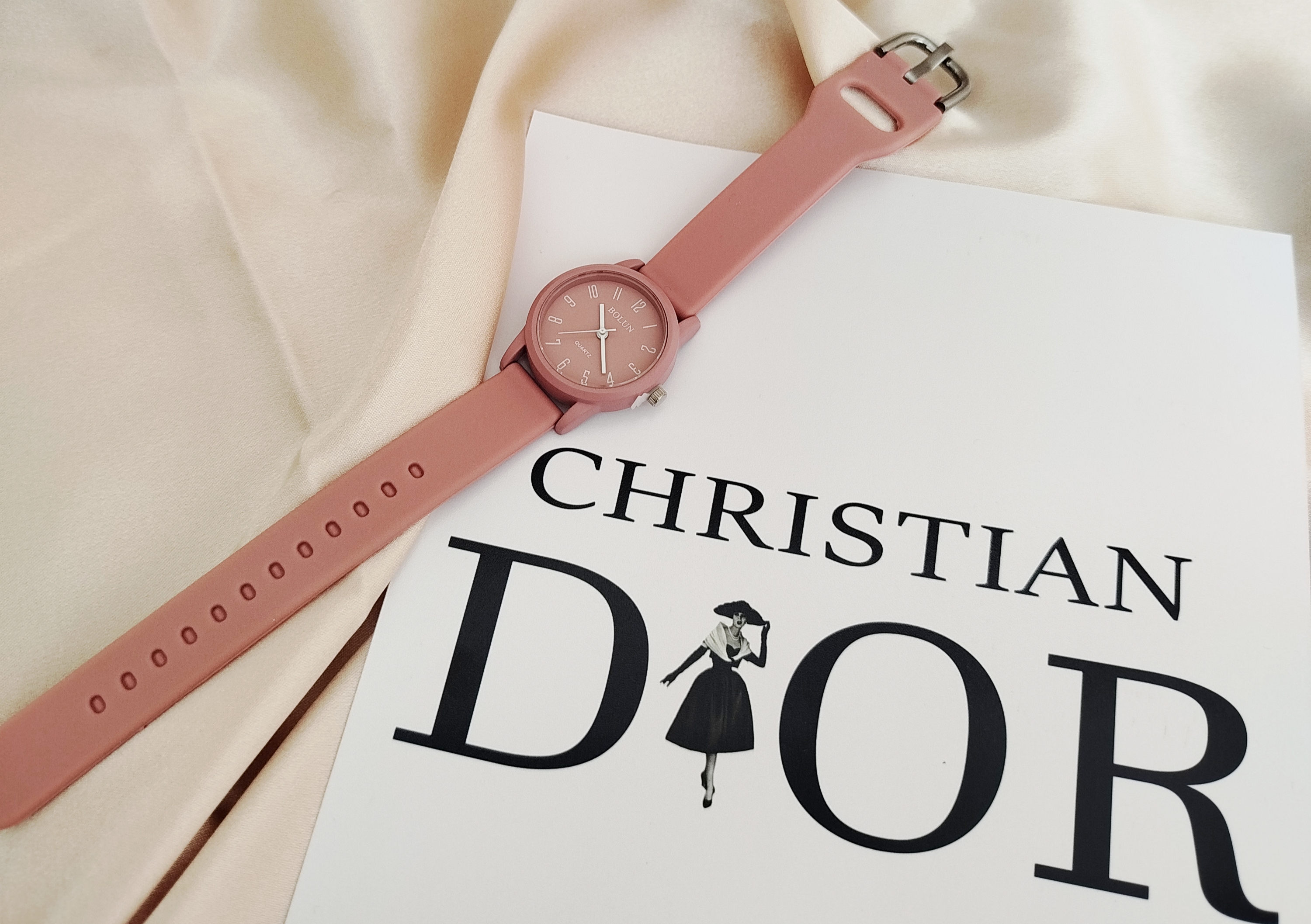 ساعت بولون متوسط رنگ ثابت بند سیلیکونی